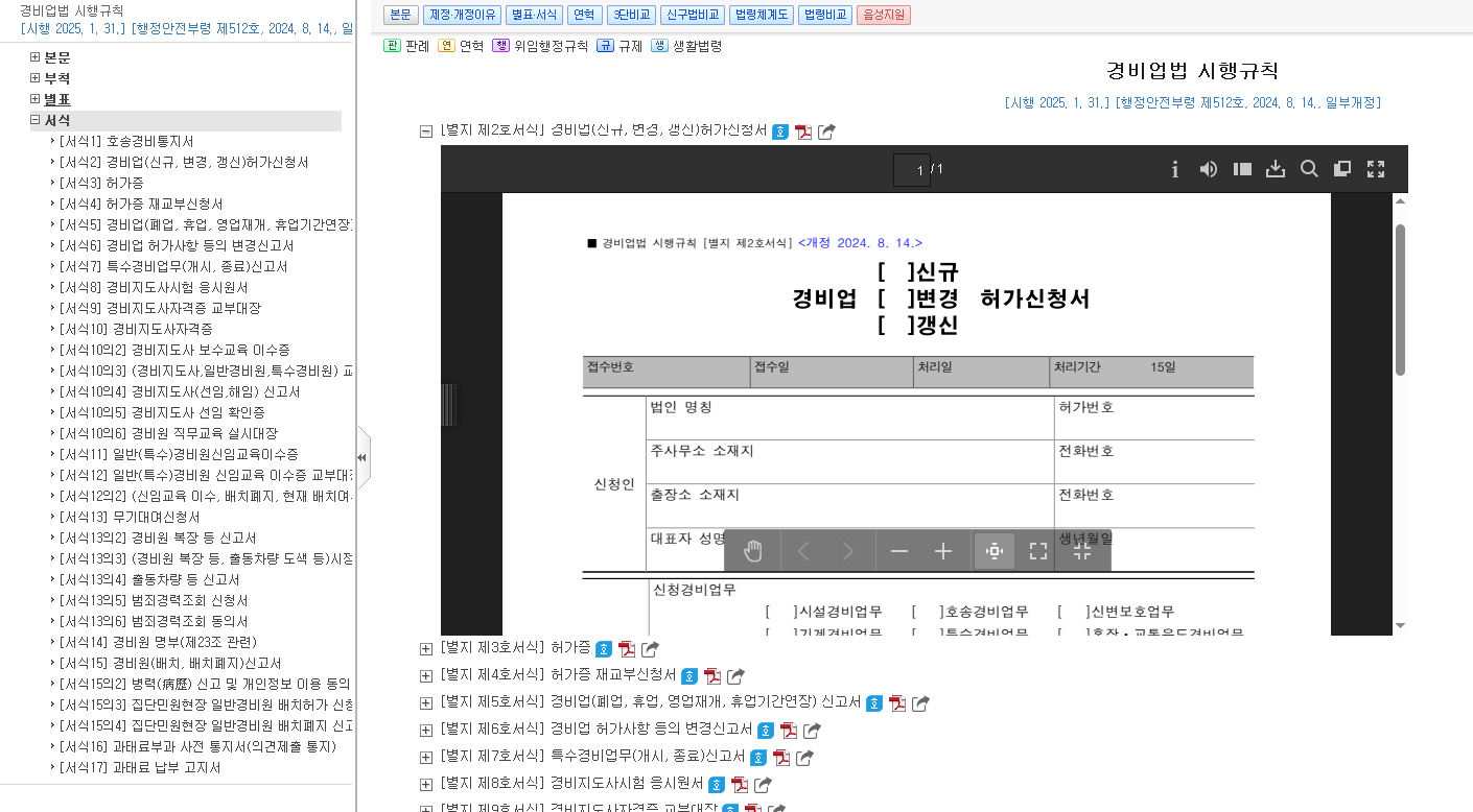 경비업 허가 신청서 양식은 경비업법 시행규칙 [서식 2] 경비업(신규, 변경, 갱신) 허가신청서 양식을 다운로드하시면 됩니다.