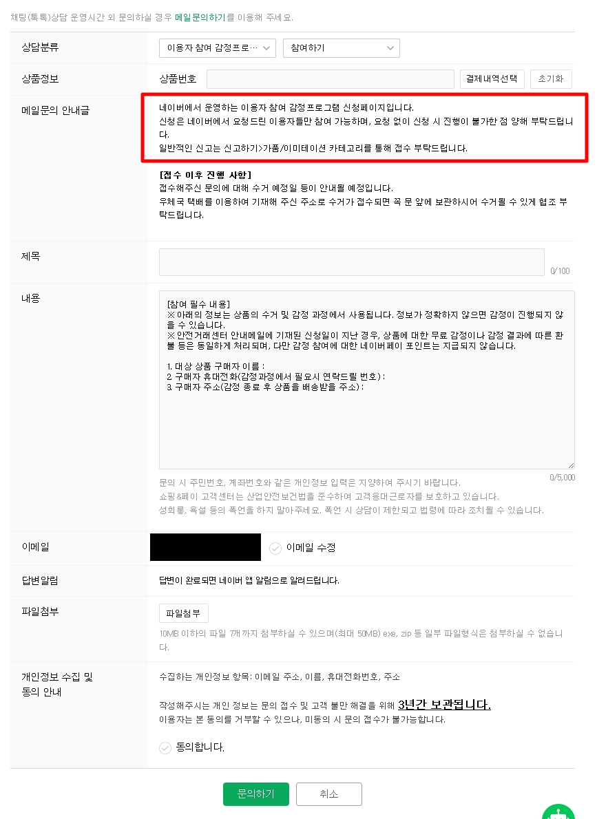 혹시나 저처럼 네이버 안전거래센터에서 메일이 날아오신 분들 중 감정 프로그램에 참여하실 분들은 몇 가지 주의사항이 있다.
