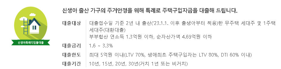 1. 대출대상(신생아특례 디딤돌대출 신청 바로가기)