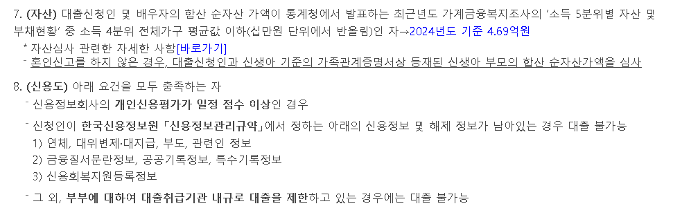 7) 대출 신청인 및 배우자의 합산 순자산 가액이 2024년 기준 4.69억원 이하