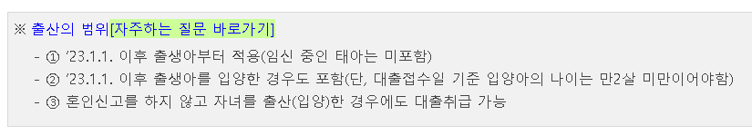 3) 대출신청일 기준 2년 이내 출산한 가구