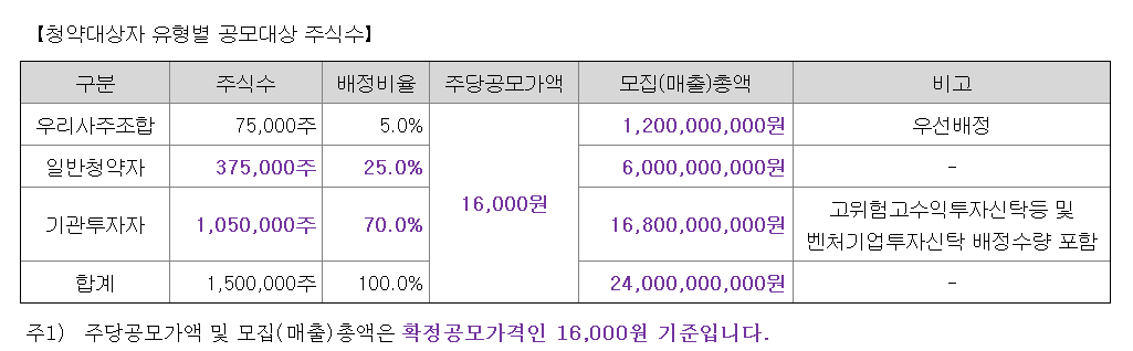 확정공모가: 16,000원