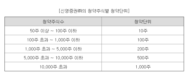 신영증권 최소 청약 주식수는 50주 이상입니다. 최소 청약 증거금은 50주*16,000원/2=400,000원입니다.