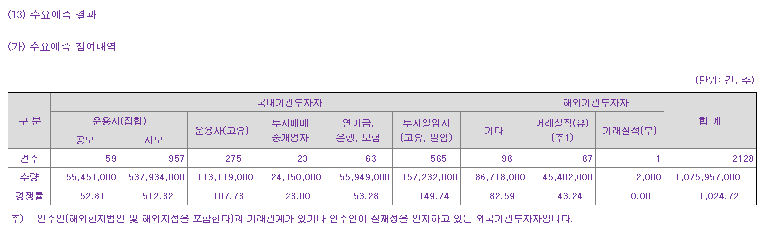 | 이엔셀 공모주 청약일정 공모정보 수요예측 결과 (0) | 2024.08.11 |