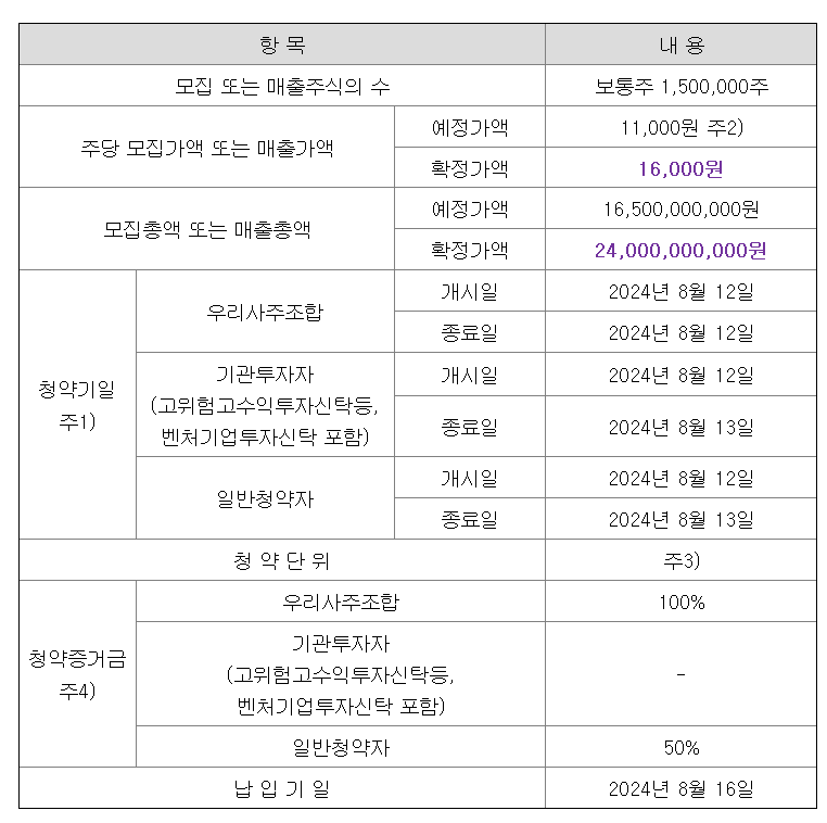 공모청약일: 2024.08.01~08.07