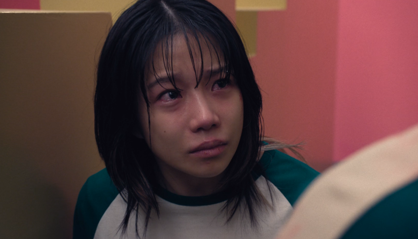 마지막 게임은 동그라미, 세모, 네모의 큰 기둥에서 마지막 생존자를 가리는 게임인데 엄밀히 말하면 이정재, 222번 아기, 임시완 이렇게 3명만 마지막에 남고 이정재와 222번 아기가 살아남게 되면서 드라마는 아주 저 멀리 내용이 산으로 가버립니다.