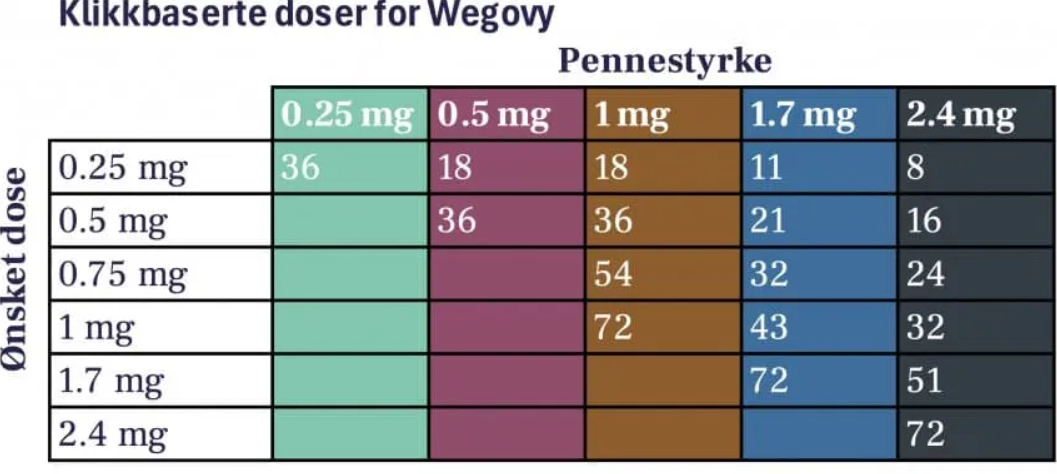위고비 용량은 0.25mg, 0.5mg, 1mg, 1.7mg, 2.4mg이 있으며 공식 용량 가이드라인은 0.25mg부터 시작해서 4주 단위로 2.4mg까지 점진적으로 증량하는 방식을 가장 기본으로 한다.