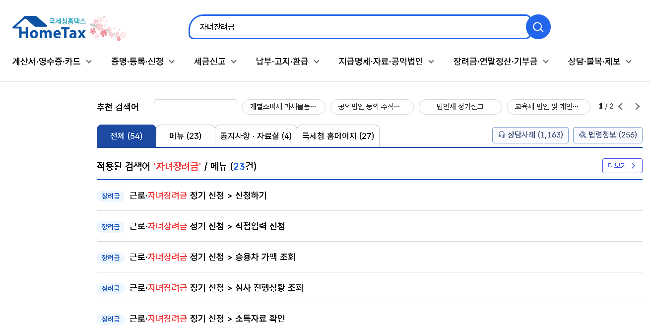 국세청 홈택스 메인화면에서 자녀장려금 검색을 하면 바로 신청하기로 접속이 됩니다.