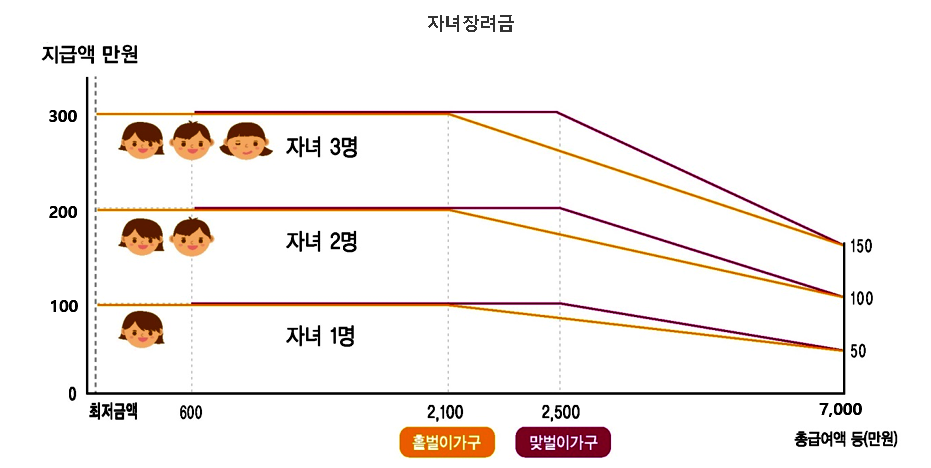 자녀장려금 소득요건은 홑벌이 또는 맞벌이 가구 7,000만 원 미만입니다.