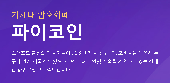 파이코인은 2019년 스탠포드 출신의 개발자들이 모바일 기반의 암호화폐를 개발하면서 누구나 쉽게 채굴을 할 수 있도록 만은 암호화폐이기 때문에 초반부터 관심이 뜨거웠습니다.