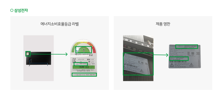 라벨, 명판, 사진 등을 확인해서 제출하는 방법은 위 1등급 가전환급 신청 사이트에 세부적으로 나와있으니 참고하시기 바랍니다. 감사합니다.